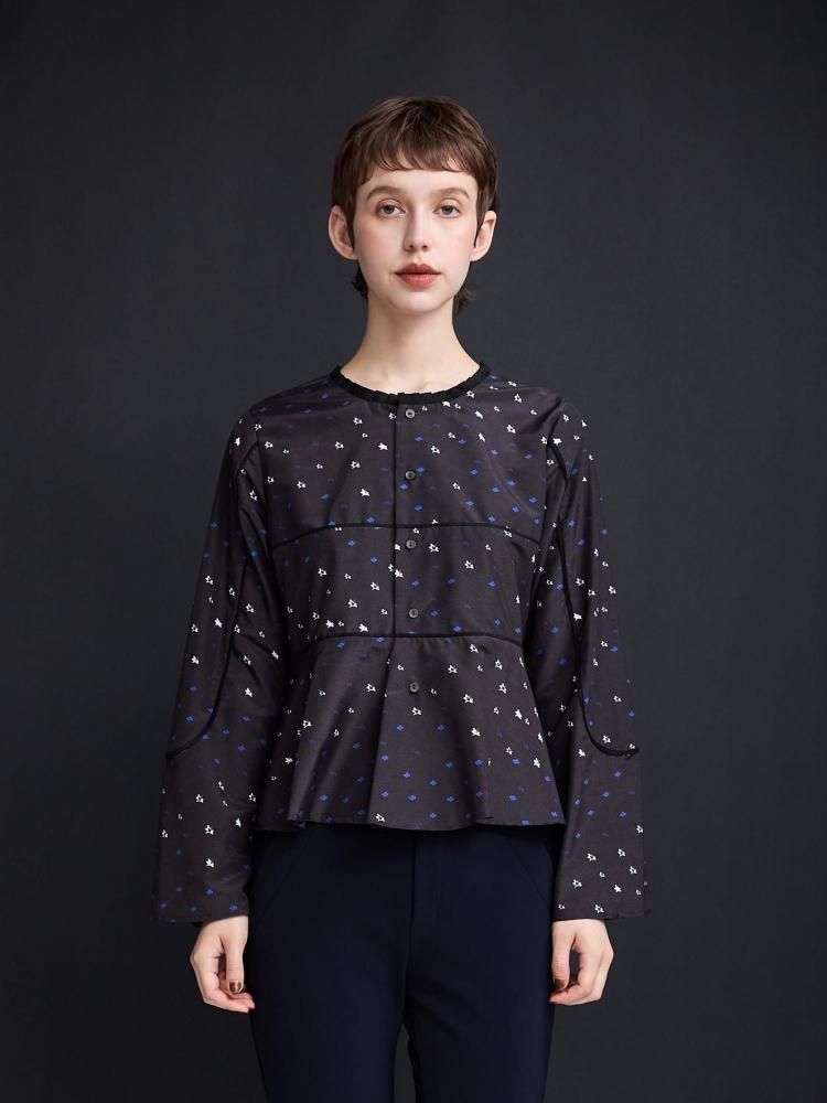 小さなフラワーモチーフが散りばめられたオリジナルプリント柄は