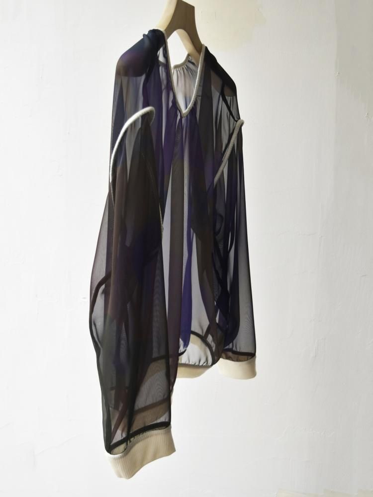 袖口、裾、アームフォールにウールのリブ使いがされています。