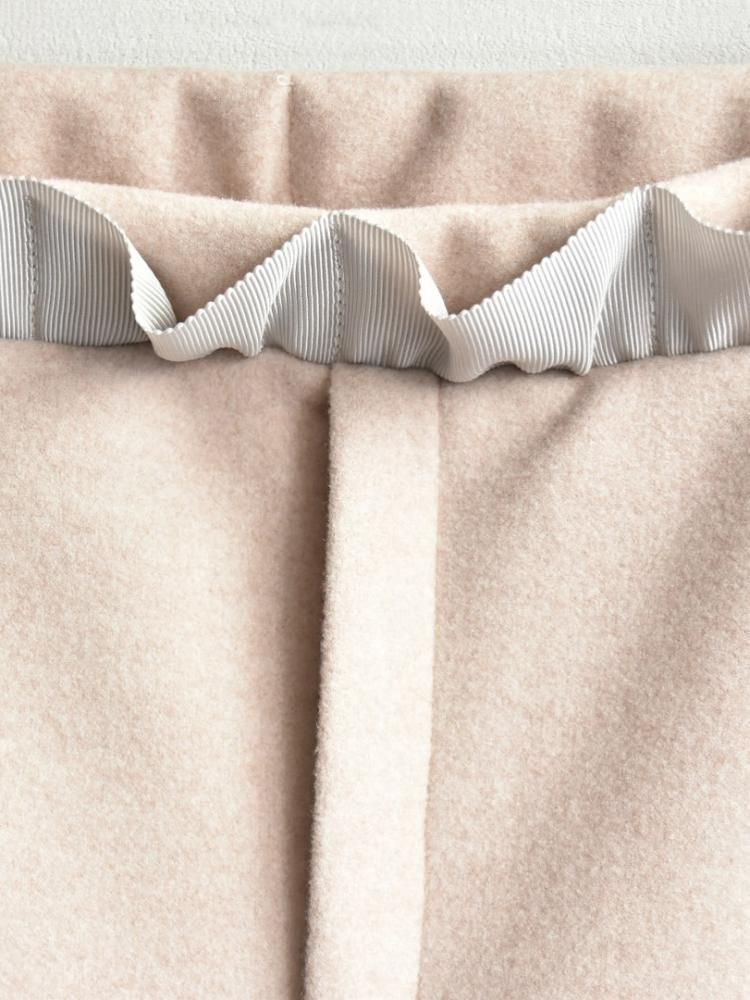 ウエストと裾スリットにグログランテープを使い、高級感のある仕上がりです。