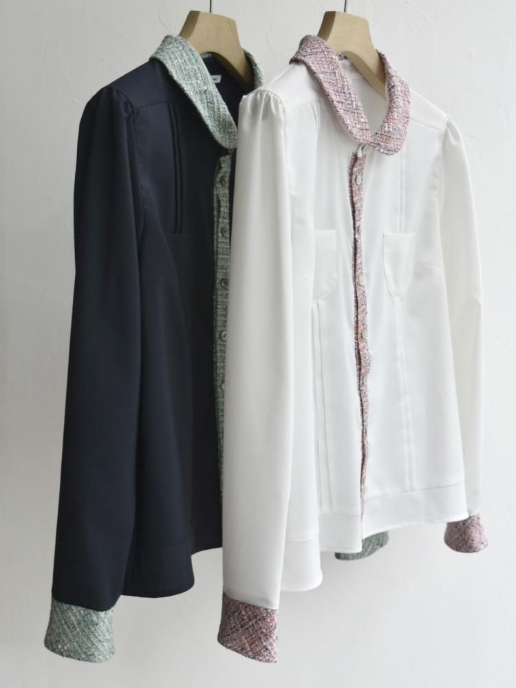 ジャケットインにも主役にもなるNAVY.WO のブラウスシリーズ。