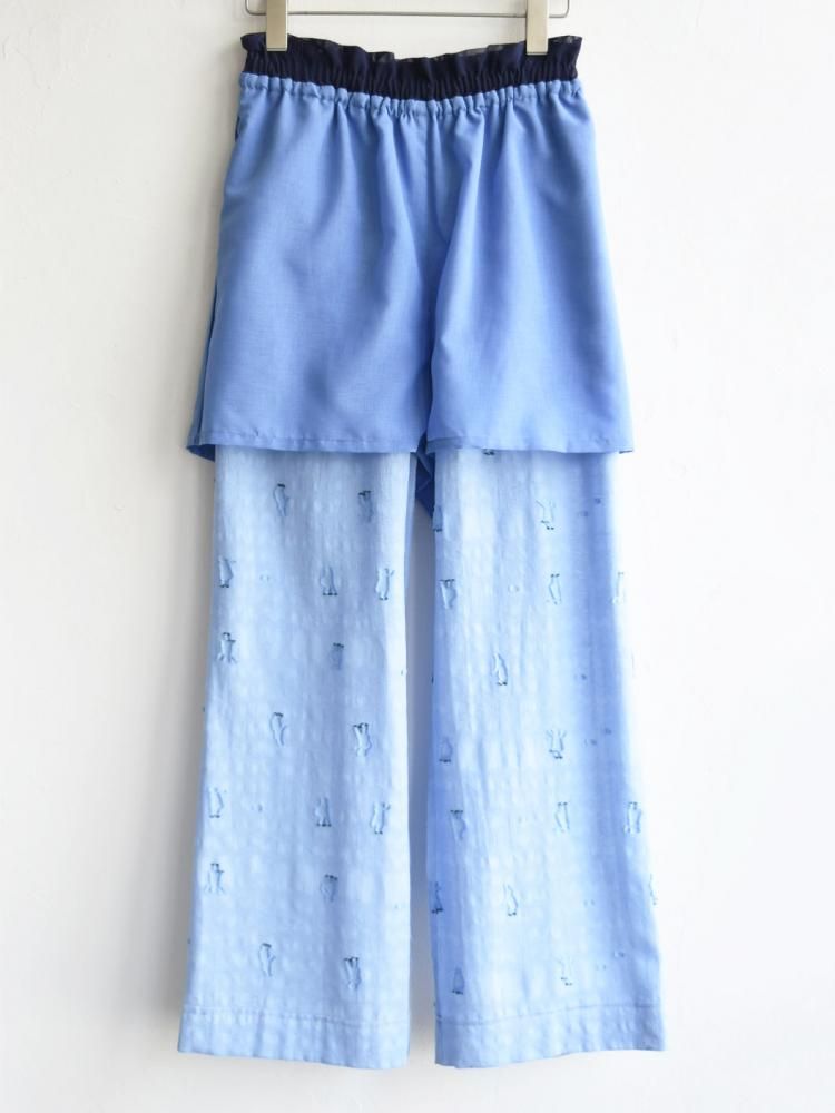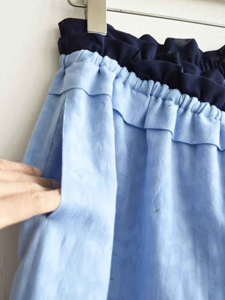 ウエスト部分にはチュール素材を使用し、ゴム仕様でもシャープで洗練された印象に。内側にはショートパンツ丈の裏地付きで、透け感も気になりません。