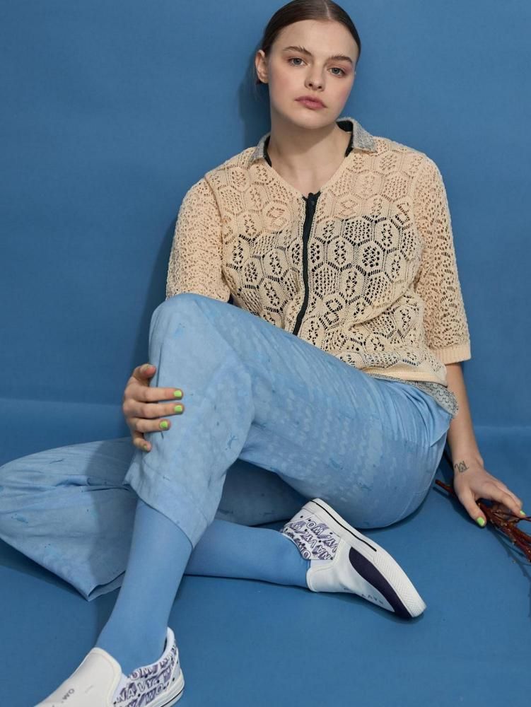 繊細な織柄とアートのようなデザインが、穿くだけで装いに深みと個性を与えます。