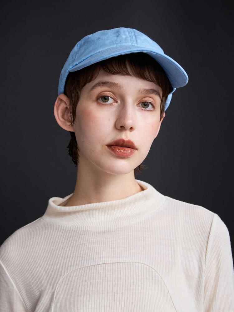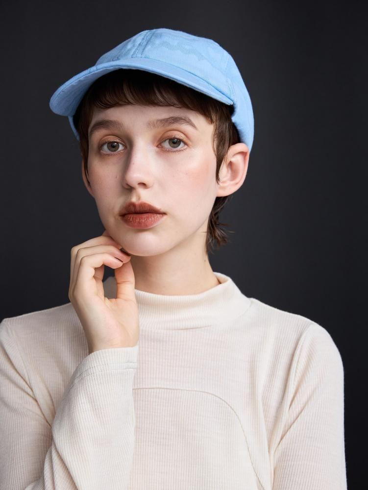 繊細な立体織り柄がミニマルなキャップに奥行きを演出