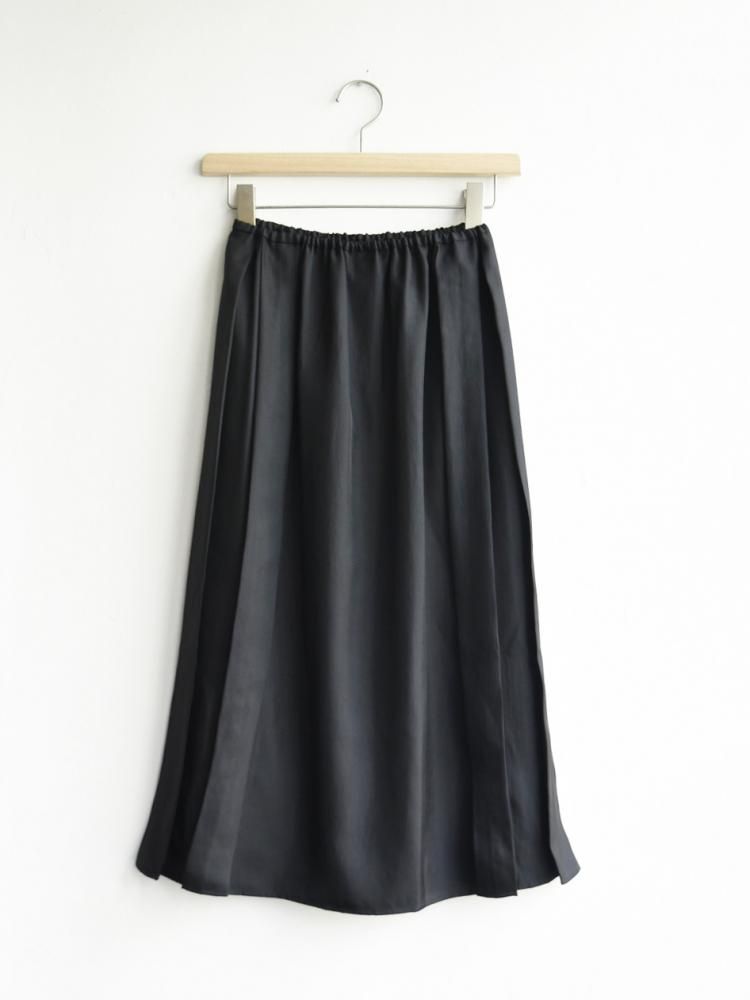 光沢のあるツイル素材を使用したプリーツスカートは、