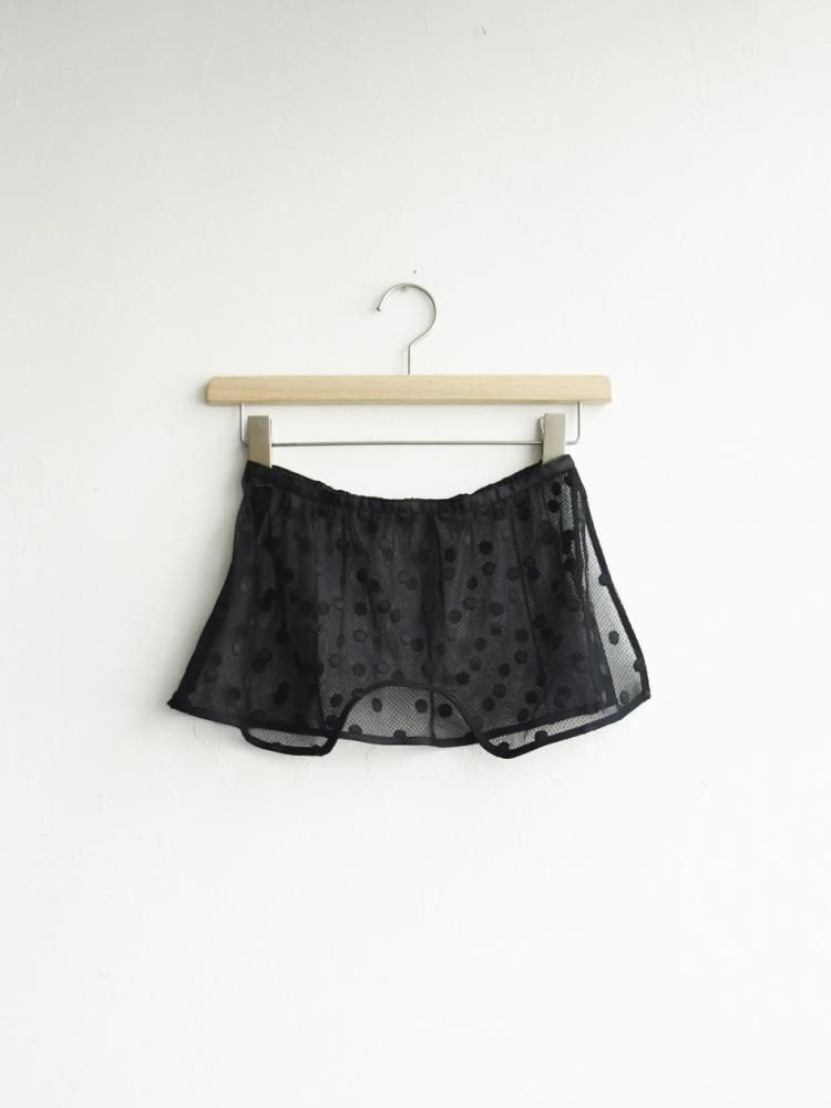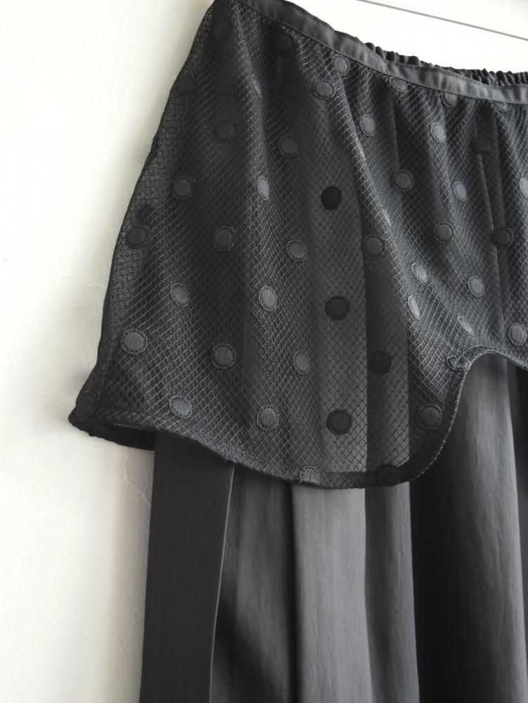 ドット刺繍を施した立体的なレースオーバースカート付き