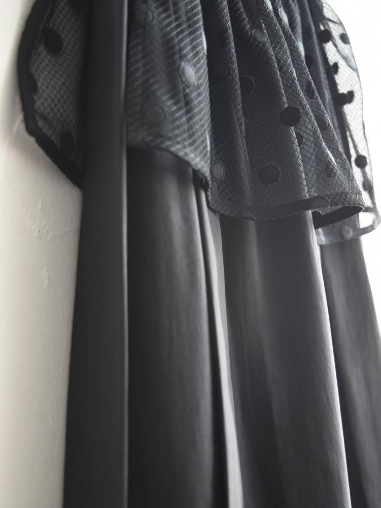 腰に重ねるオーバースカートには、チュールとメッシュを二重に重ねた上に、