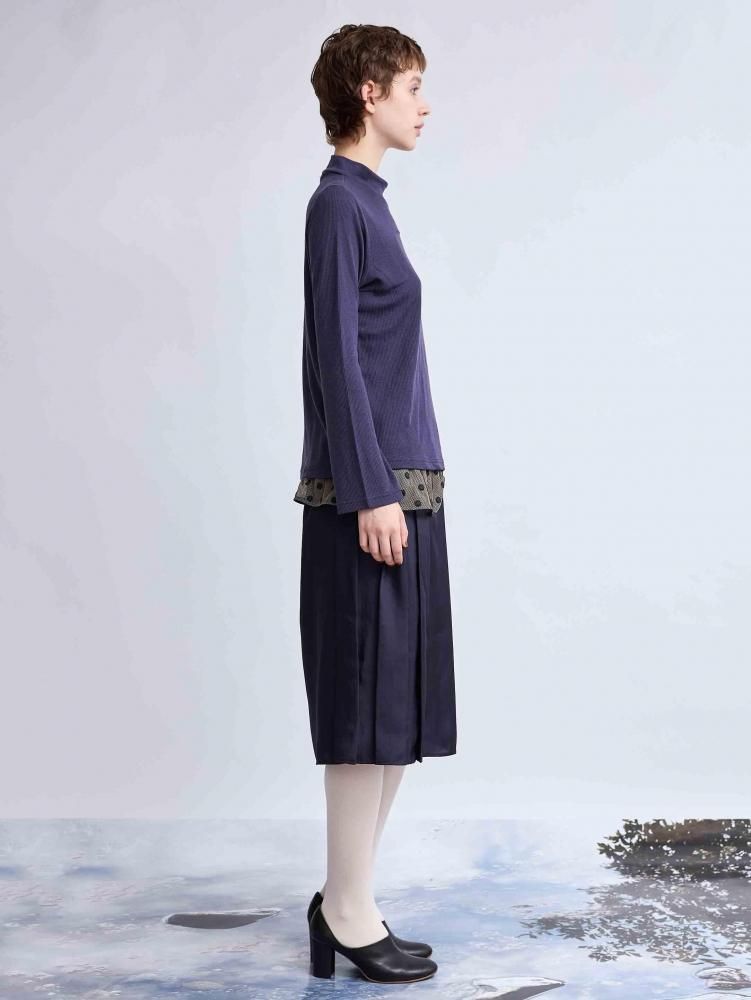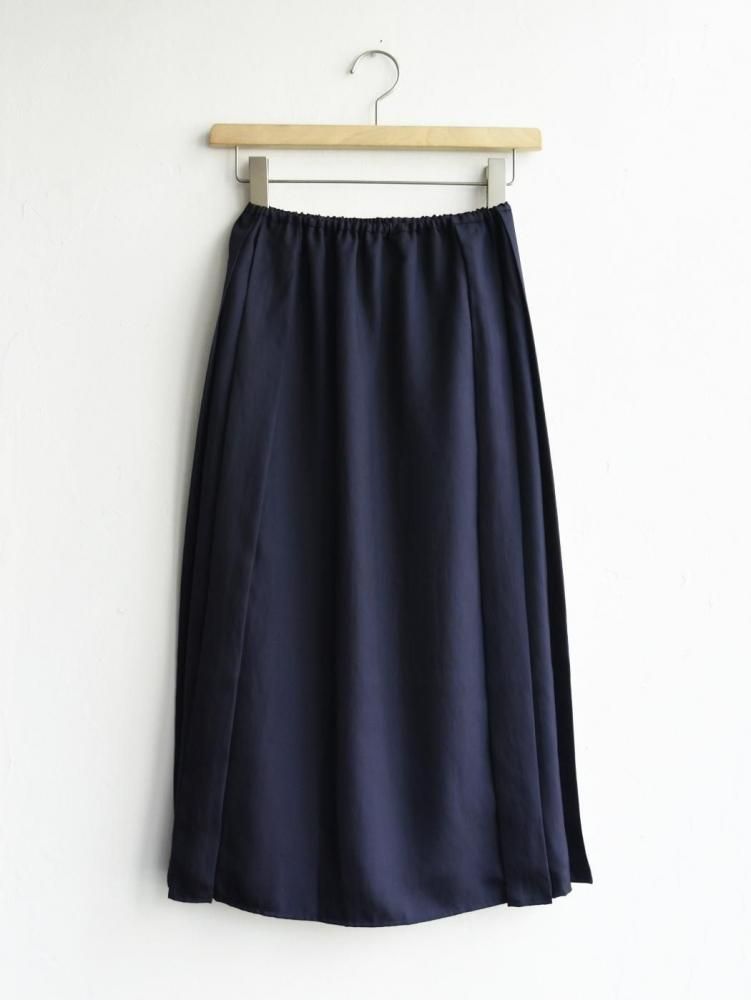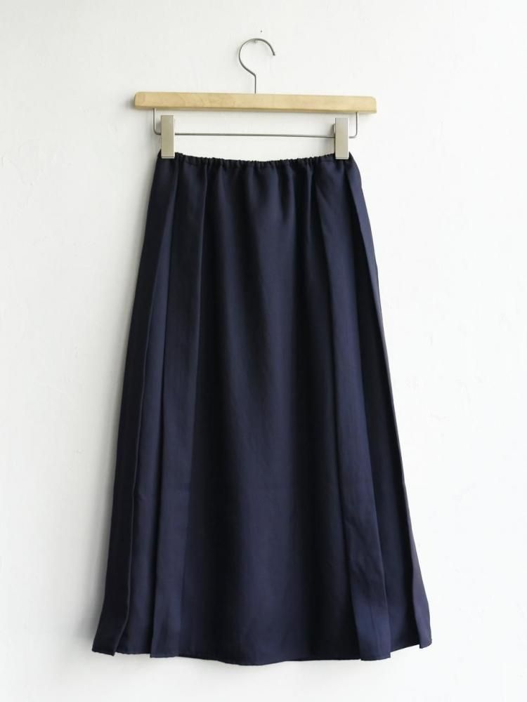 光沢のあるツイル素材を使用したプリーツスカートは、