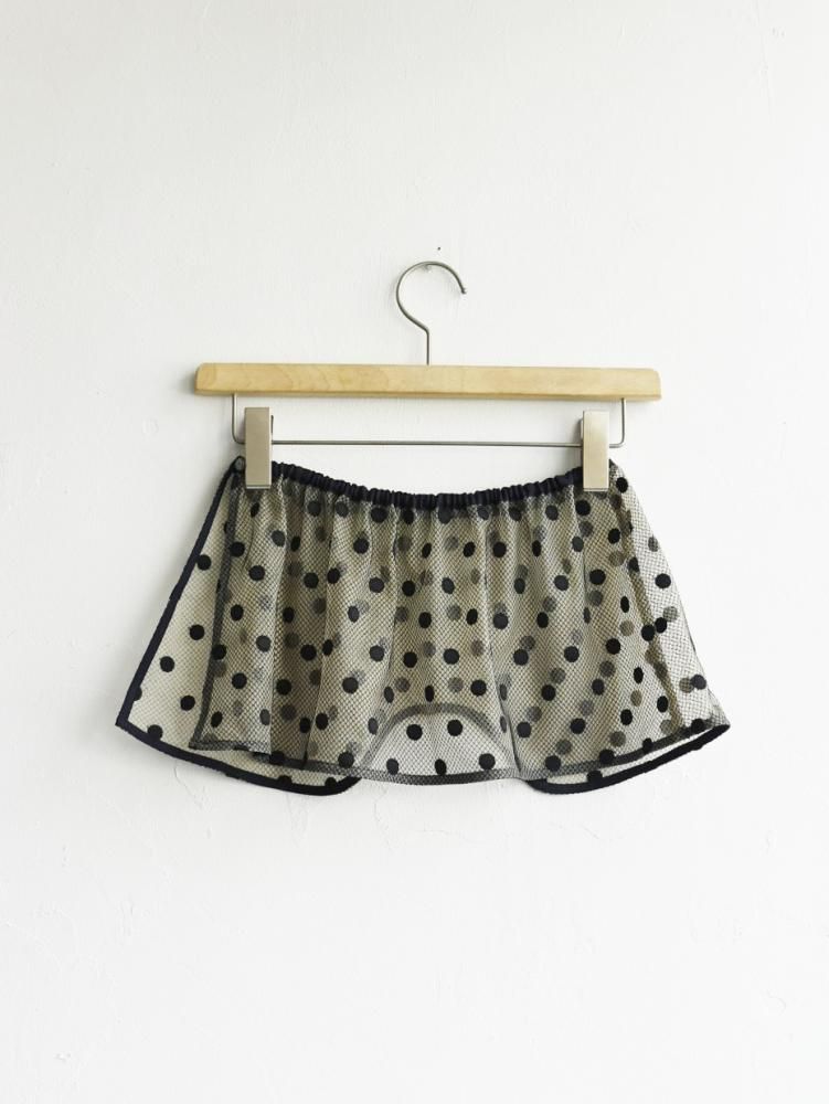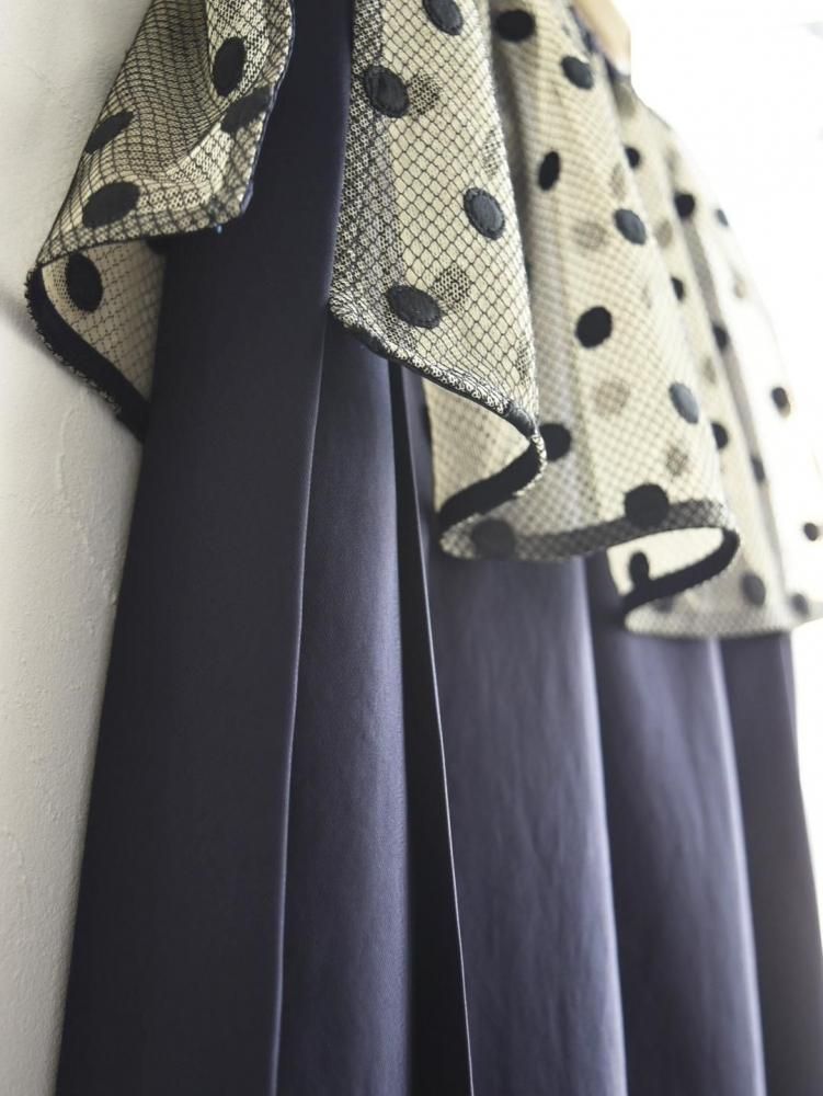 ドット刺繍を施した立体的なレースオーバースカート付き