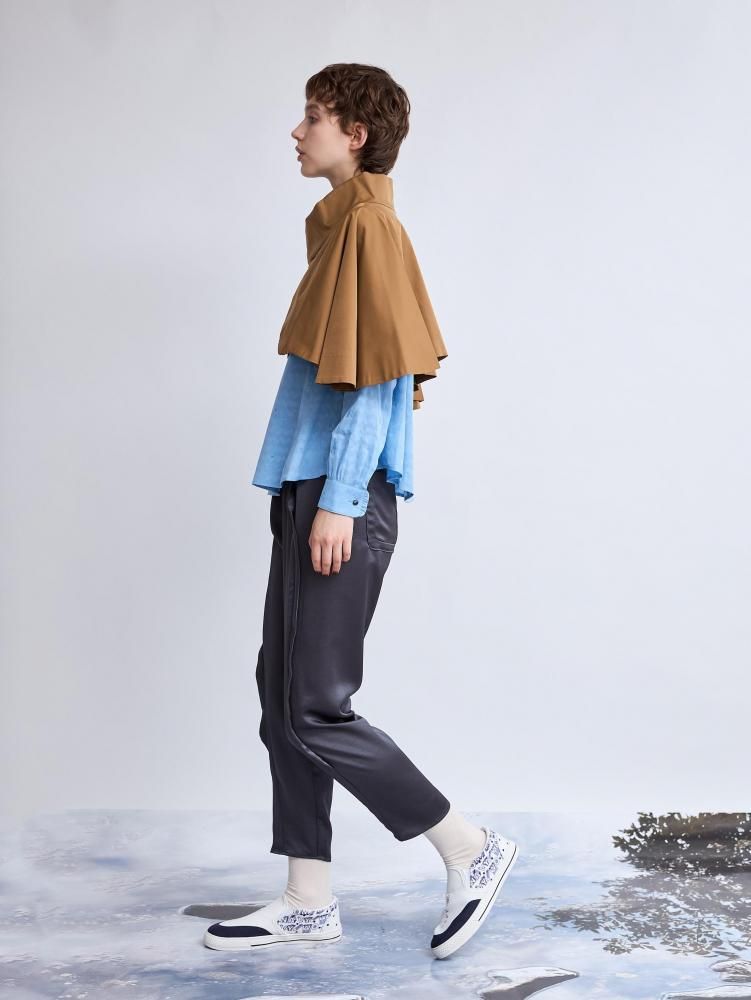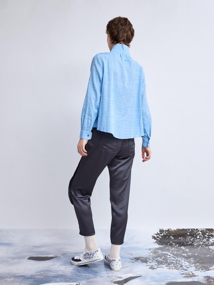 大きめの立ち襟は、ふんわりと立ち上がるシルエットが特徴。