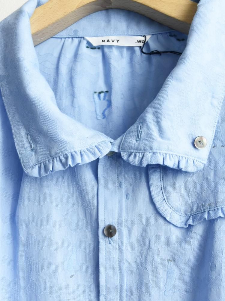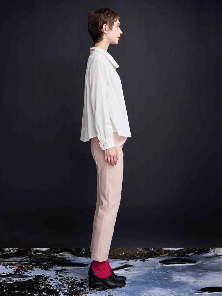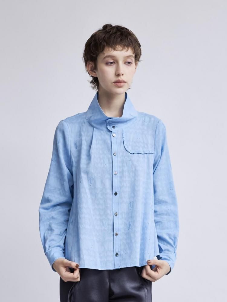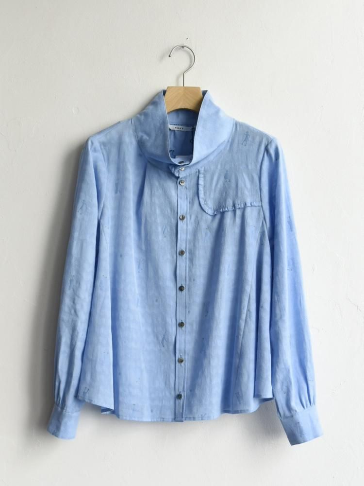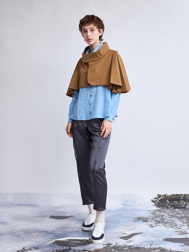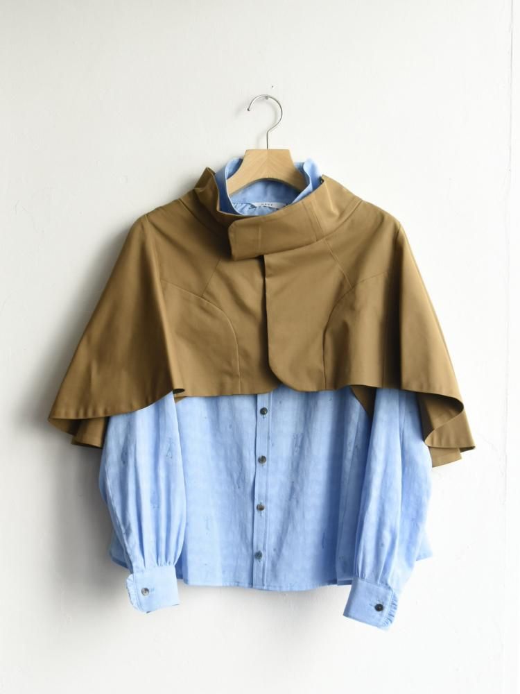 大きめの立ち襟は、ふんわりと立ち上がるシルエットが特徴。