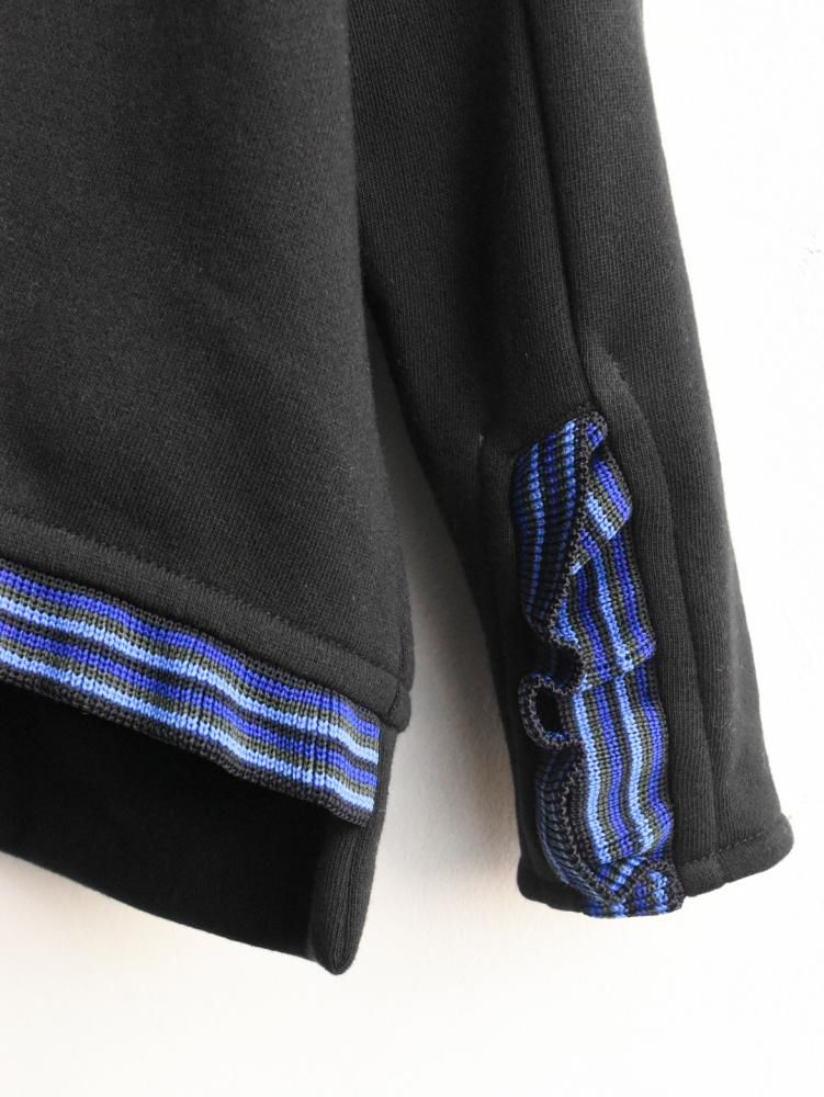 前裾と袖口にトリミングされたフリルニットテープが可愛く、印象的な一枚。