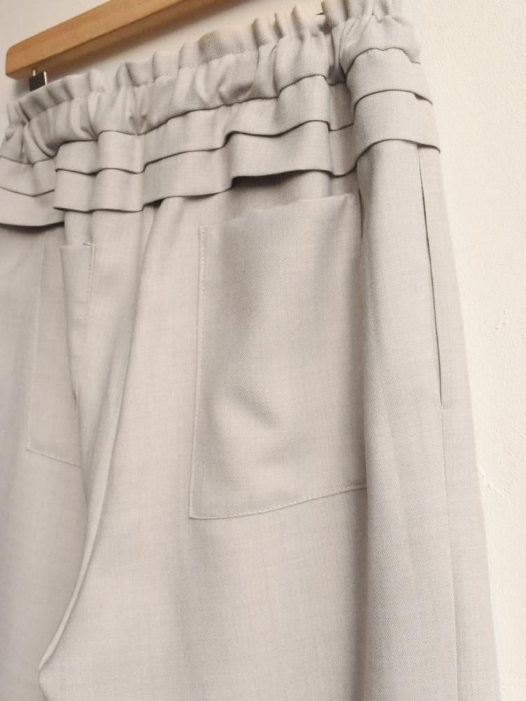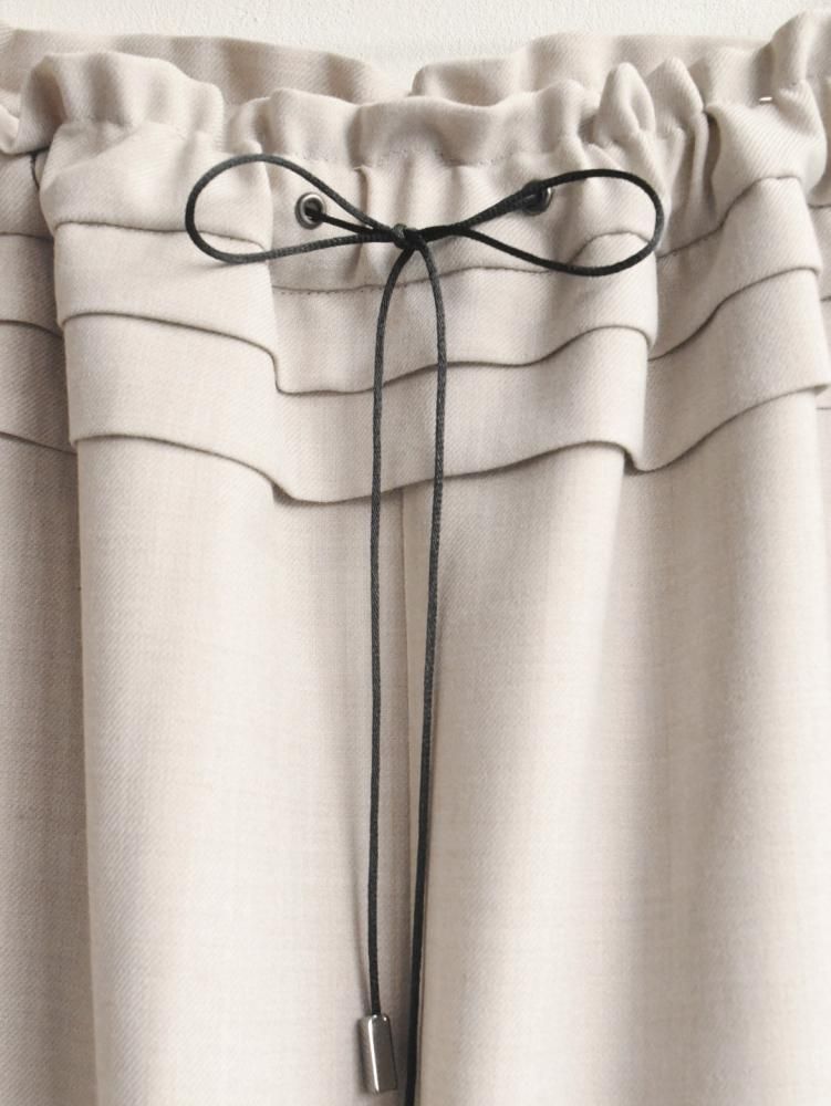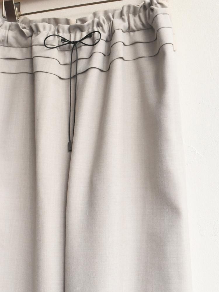ウエストにはタックディテールを配し、きちんと感の中にほどよい抜けを演出。