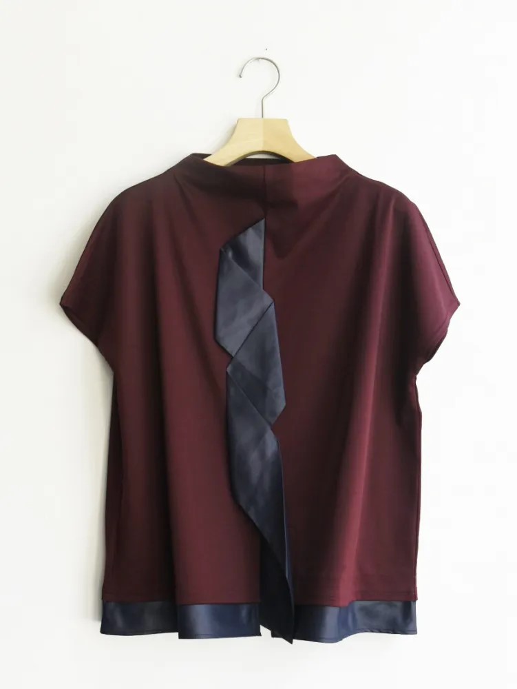 程よい厚みのポンチ素材で快適な着心地を叶えつつ、艶やかなリボンを折り紙のようにランダムにたたき付けた立体ディテールが印象的です。