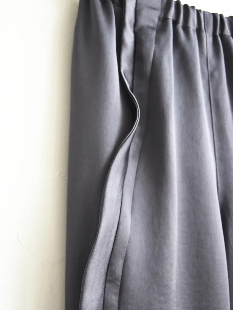 一方「Vintage Satin Frill Pants」は、ヴィンテージライクな表情をもつサテン生地を使用した、上品な光沢感が魅力のフリルテーパードパンツ。