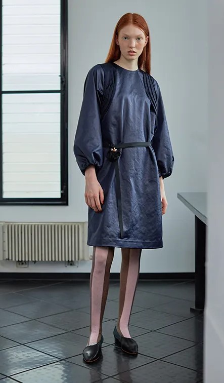 普遍的なシルエットに、タックディテールと素材の美しさが加わり、